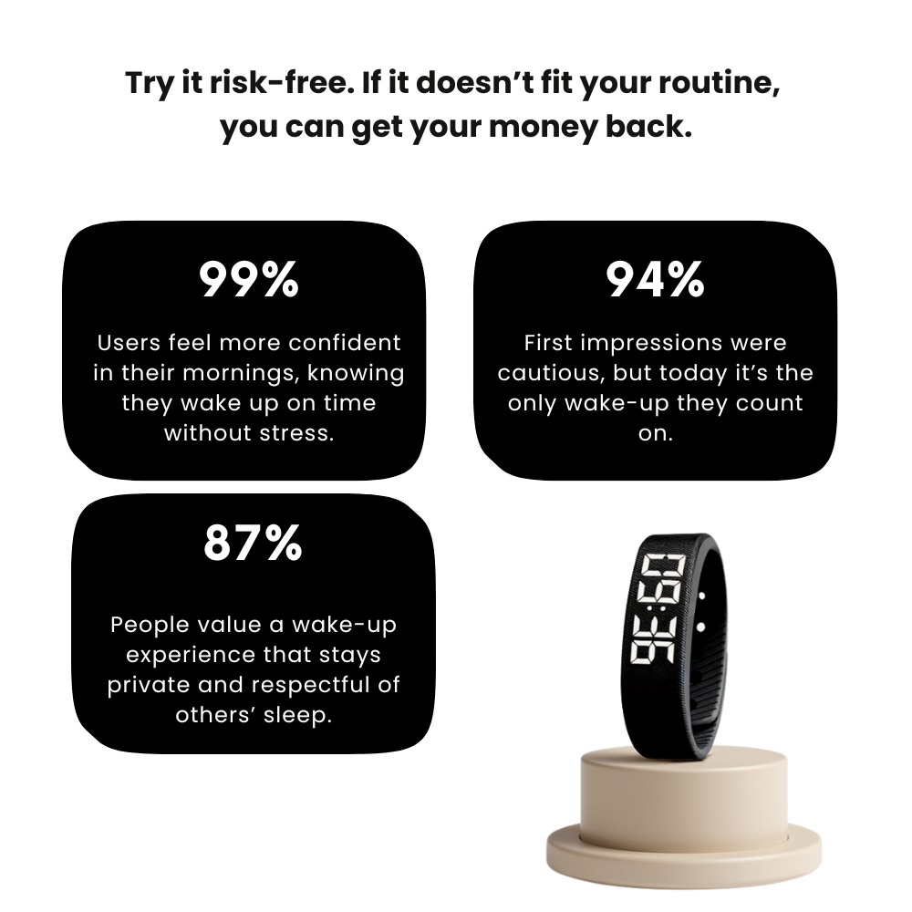 Unlike traditional sound alarms that your brain can eventually tune out, these vibrations stimulate your nervous system and naturally prompt your body to wake up.