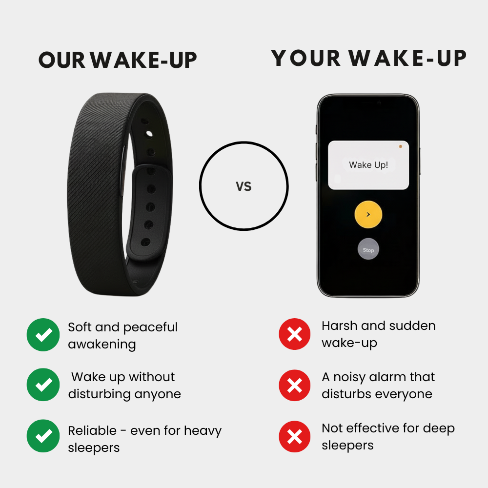 Most alarms rely on noise but deep sleep blocks out sound easily. A vibration on your wrist, however, is felt instantly by your body.